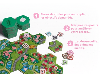Avec Dorfromantik – Sakura, les joueurs découvrent une campagne entièrement nouvelle et plus exigeante dans l’univers idyllique de Dorfromantik. Les fleurs de cerisier introduisent un tout nouvel élément de gameplay dans vos créations de paysages. L’objectif reste de collaborer pour concevoir de magnifiques paysages à l’aide de tuiles hexagonales, cette fois dans les somptueux décors ruraux du Japon. En parallèle, il faudra répondre aux demandes des habitants pour marquer des points précieux et débloquer plus de 40 nouvelles réalisations dissimulées dans 6 boîtes secrètes.