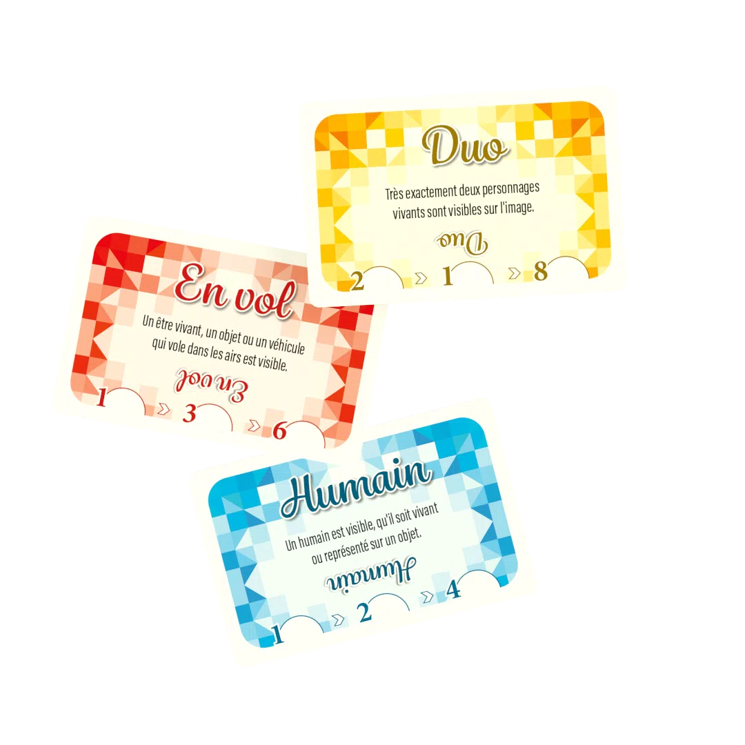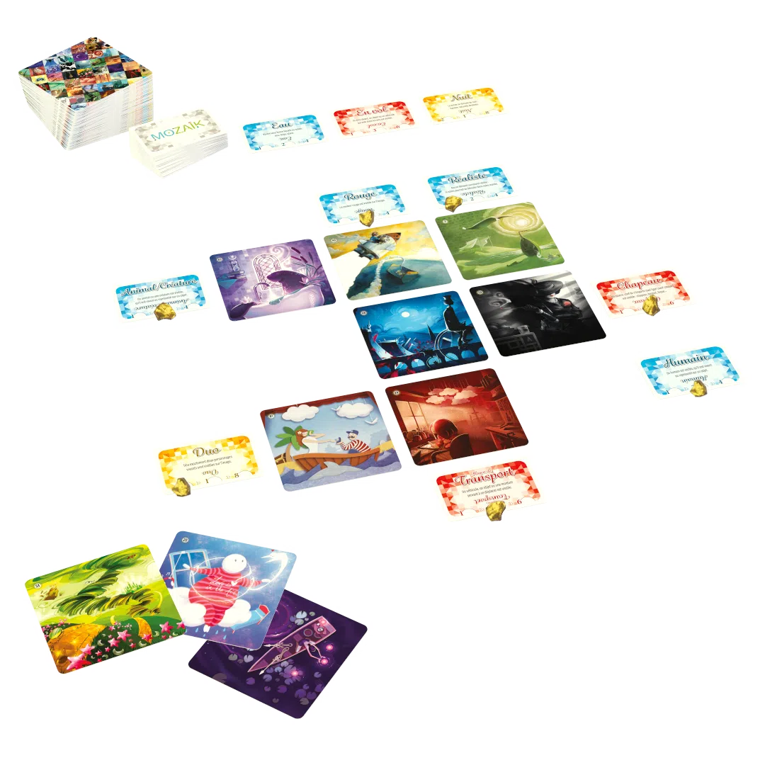 Piochez des images et des mots puis composez judicieusement votre grille en trouvant les liens qui les unissent. Faites preuve d’observation, de créativité, et saisissez l’opportunité de jouer au bon moment afin d’obtenir la meilleure harmonie possible !