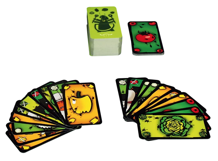 Les joueurs préparent le plus vite possible une salade composée en posant leurs cartes « Légumes » à tour de rôle. Le problème, c’est qu’ils doivent également annoncer le nom du légume correspondant aussi vite qu’ils les posent, sans mettre les pieds dans le plat. Attention aux cartes spéciales qui ajoutent du piment à la Salade !